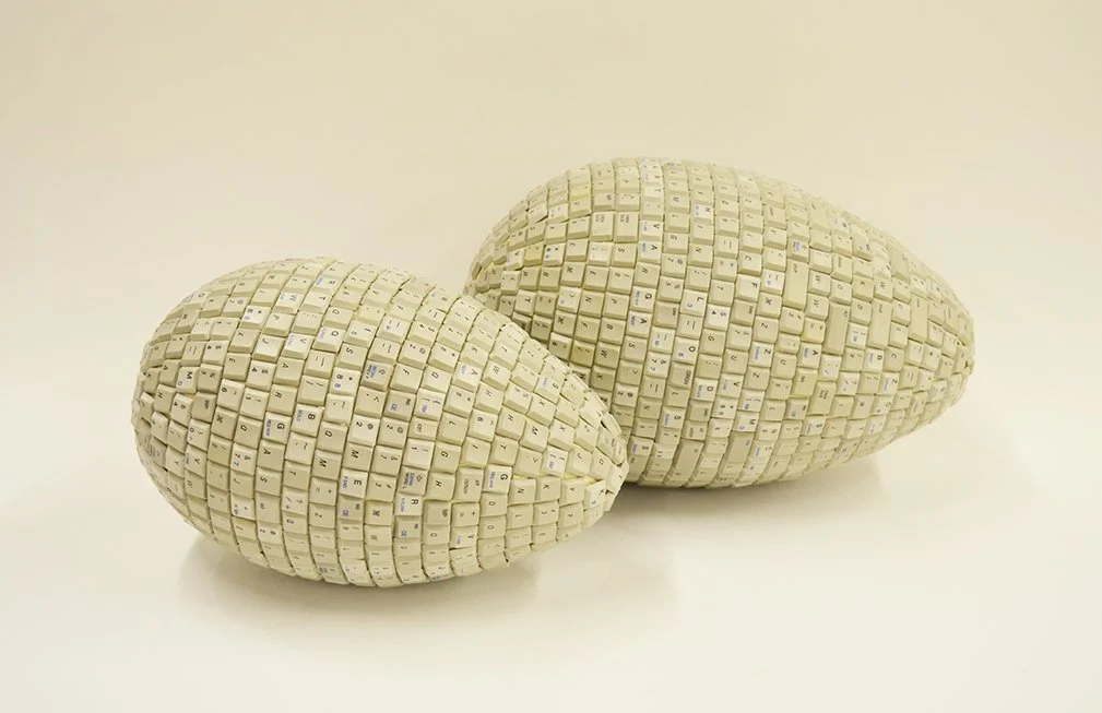 (Keyboard keys, plastic form, paper, paint, and adhesive)
